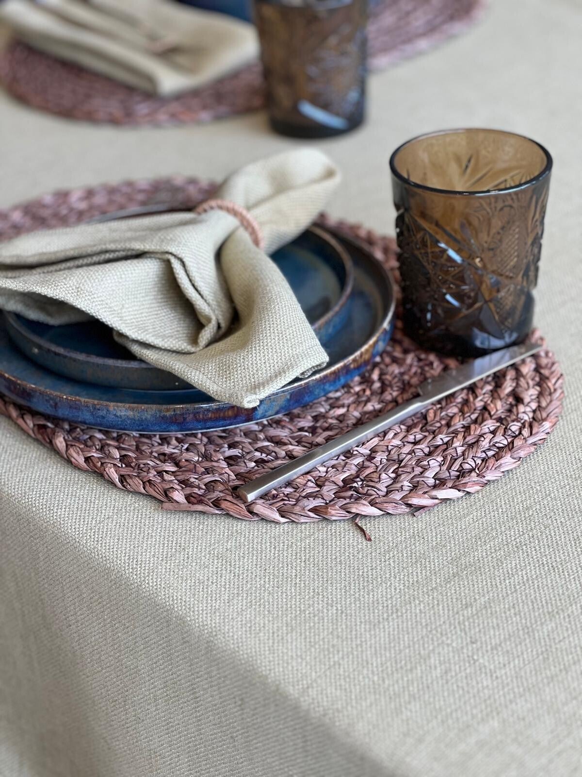 Naast de strijkvrije stoffen hebben we nog gewassen katoen en linnen-viscose stoffen waar we tafelkleedjes op maat uit maken. Tafelkleedjes met prints zijn eveneens beschikbaar maar die zijn reeds in een bepaalde maat.
